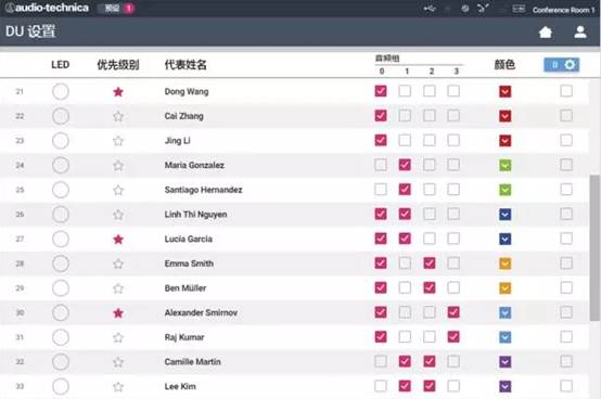 每個話筒底座都可以進行獨立編程,主席席位可以隨意設定,突破國內1+N的席位配置,并且話筒底座有多色LED顯示,隨意設置LED顏色,更加直觀識別會議人身份,提升您的會議服務,讓您 的會議更專業更細節。